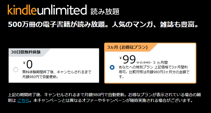 - 初めてKindle Unlimitedを利用する人であれば、30日間の無料体験はほぼいつでも利用できます。