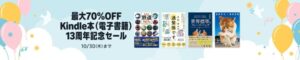 ![]() 出典:kindle unlimited | 【最大70%OFF】 Kindle本(電子書籍) 13周年記念セール | Kindle本(電子書籍) 最大70%OFF | 本キャンペーンページに 表示されている対象本を購入 | 2025年10月17日 ~2025年10月30日 |