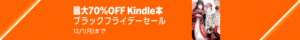 出典:kindle unlimited | 【最大70%OFF】 Kindle本 ブラック フライデーセール | kindle本(電子書籍)が 最大70%OFF | 本キャンペーンページに 表示されている対象本を購入 | 2025年11月14日 ~2025年12月1日 |