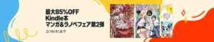 ![]() 出典:kindle unlimited | 【最大85%OFF】Kindle本(電子書籍) マンガ&ラノベフェア 第2弾 | kindle本(電子書籍)が最大85%OFF | 本キャンペーンページに 表示されている対象本を購入 | 2026年2月6日 ~2026年2月19日 |
