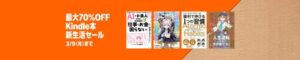 ![]() 出典:kindle unlimited | 【最大70%OFF】 Kindle本(電子書籍) 新生活セール | kindle本(電子書籍) 購入価格が最大70%OFF | 本キャンペーンページに 表示されている対象本を購入 | 2026年3月3日 ~2026年3月9日 |