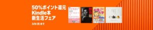 - 特典:kindle本(電子書籍)が最大50%OFF