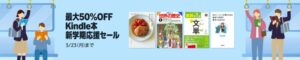 - キャンペーン名:【最大50%OFF】Kindle本(電子書籍) 新学期応援セール