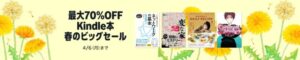 kindle unlimitedでは、2026年4月17日(金)~2026年4月30日(木)の間で、「最大50%OFF Kindle本(電子書籍) 春爛漫大セール」を実施しています。