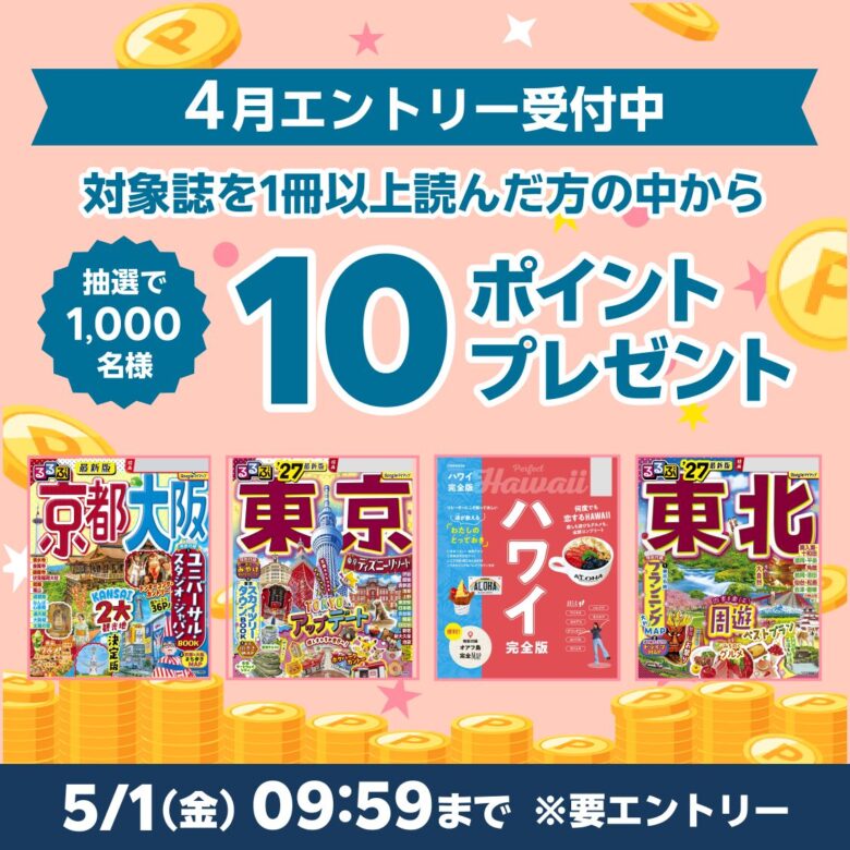対象雑誌を読んだ方の中から抽選で50ポイント・対象店舗にて3,000円以上購入した方の中から抽選で500ポイントプレゼント - 期間:2026年3月2日~2026年5月7日