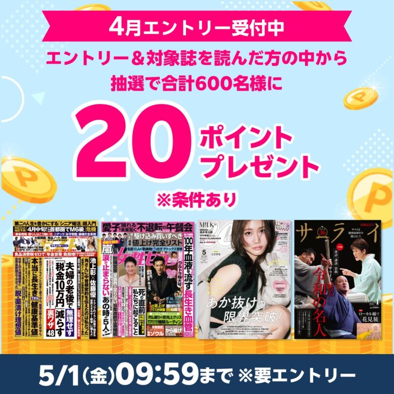 ③キャンペーン開催期間内に対象雑誌を読めば抽選で50ポイント贈呈
