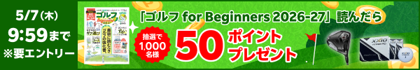 - 「ゴルフ for beginners 2026-27」を読んだ方の中から抽選で50ポイント・対象店舗にて3,000円以上購入した方の中から抽選で500ポイントプレゼント