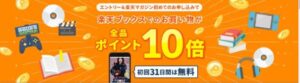 | 【初回申し込み限定】楽天ブックスでの買い物全品ポイント10倍キャンペーン | 楽天ブックスでの買い物が全品ポイント10倍 | 2026年3月1日~2026年3月31日 | 月額プラン・年額プランの両方 |
