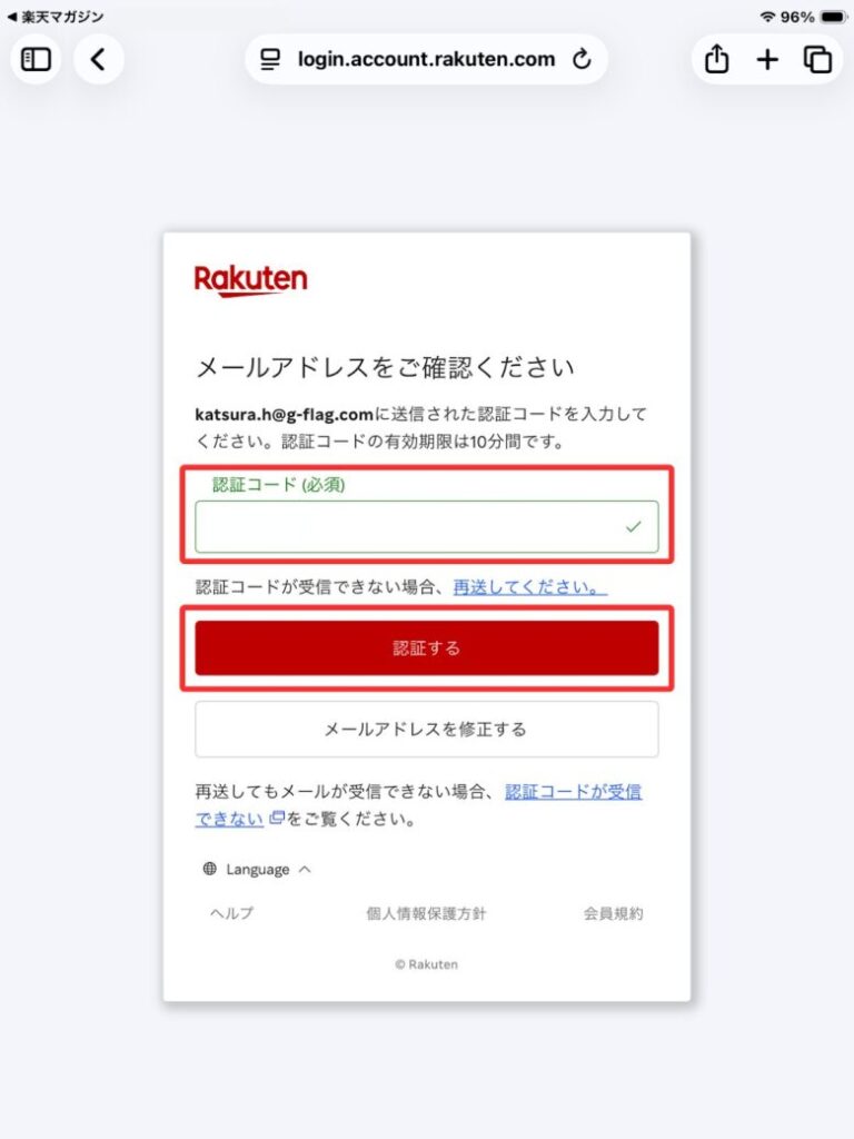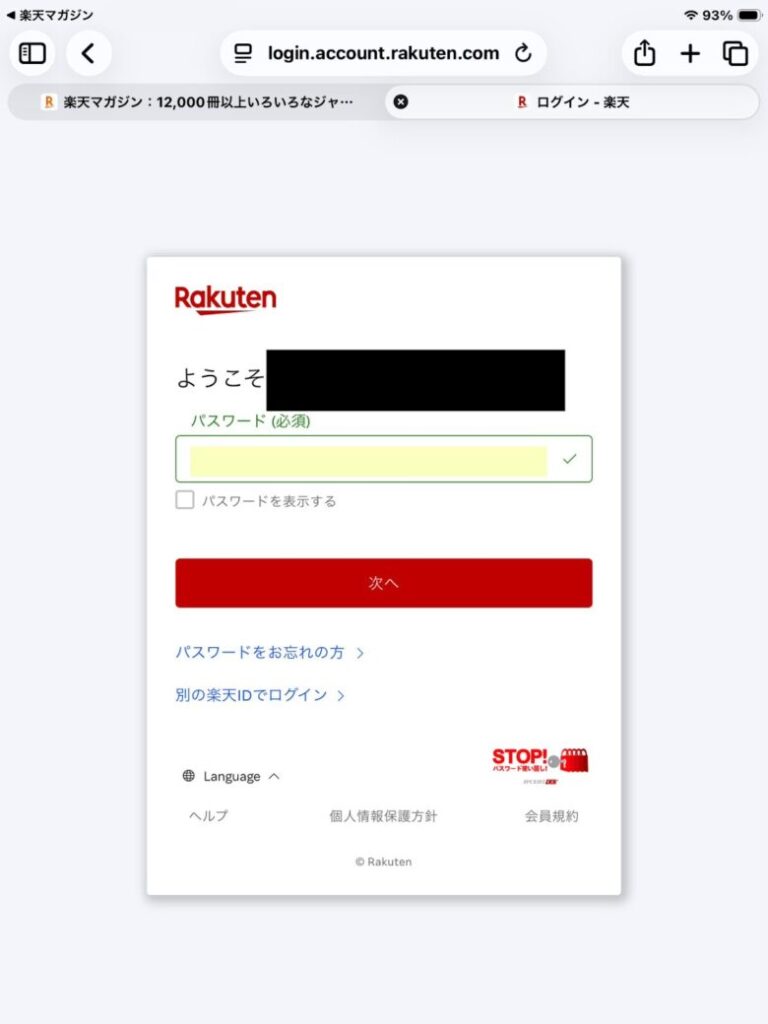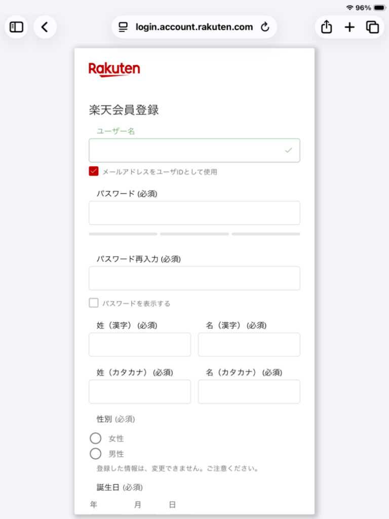 アプリをダウンロードしたら、登録した楽天会員のメールアドレス(ID)と、パスワードを入力することでログインできます。