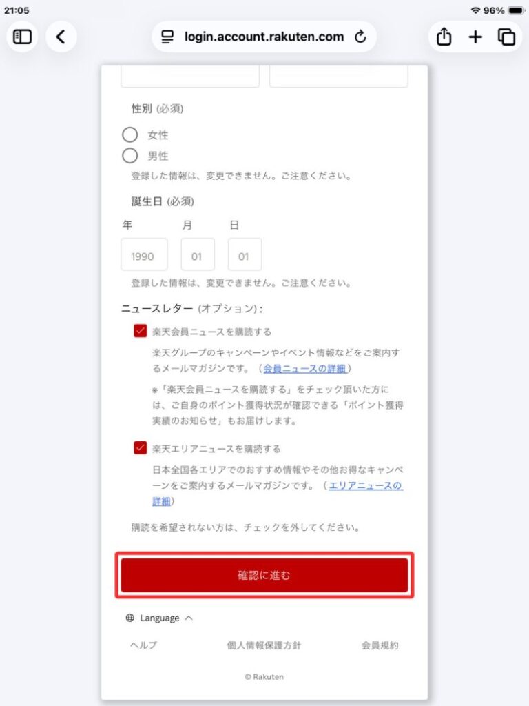 8.「お申込み内容確認」のページをスクロールすると、「楽天マガジンニュースを購読する」のチェックボックスが出てきます。必要なければチェックを外しましょう。