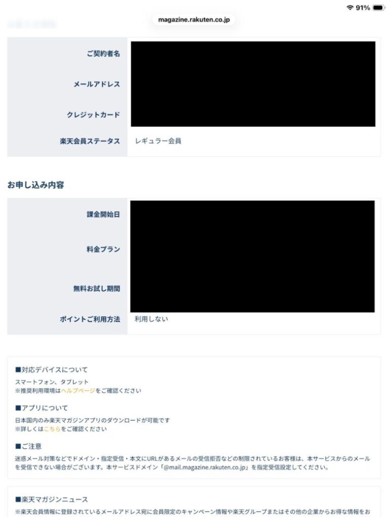ここでは、楽天マガジンの申し込み後に、注意すべき点を解説しています。