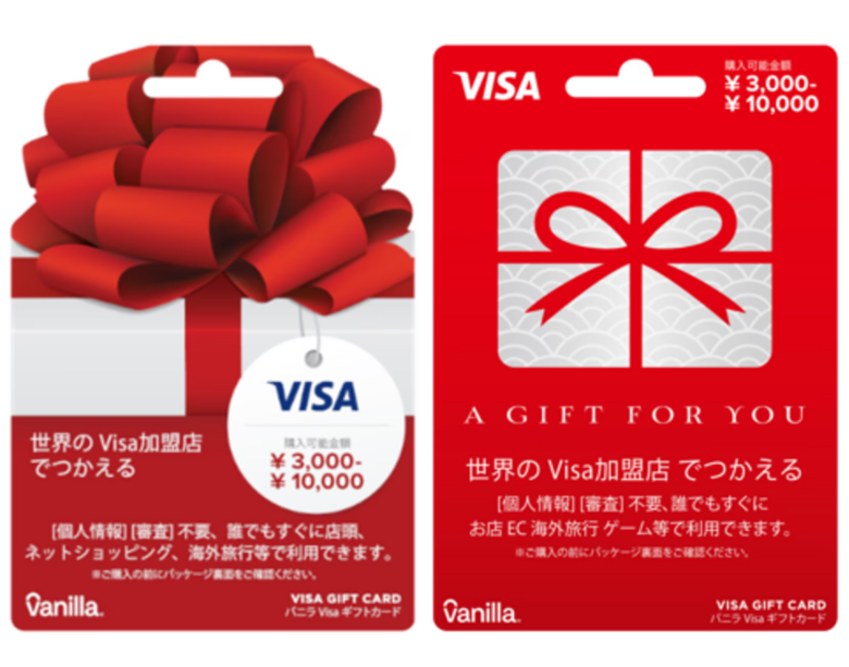 | Visa eギフト | デジタルコード形式(一部パッケージ版あり) |