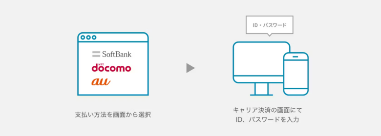 普段利用している携帯キャリアの請求システムを使うため、新たにクレジットカード情報などを入力する必要がなく、手軽で安心感のある支払い方法です。