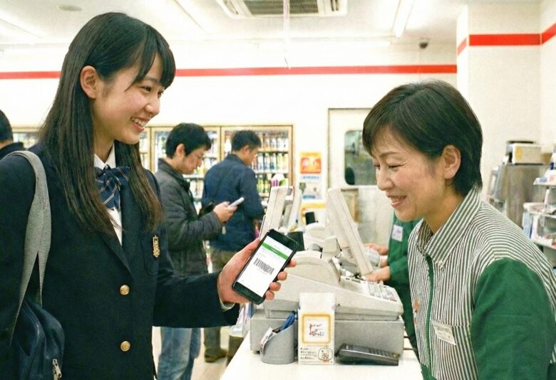 スマホ画面のバーコードをレジで提示して支払う